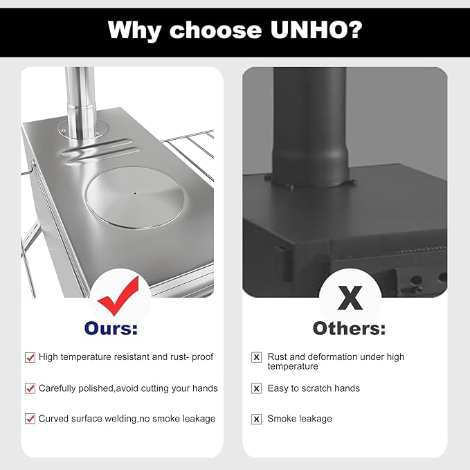 Hot Tent Stove, unho Wood Burning Stove, Portable Wood Stove with 6 Stainless Chimney Pipes for Outdoor Heating & Cooking, Ice Fishing, Hunting,Winter Warmth