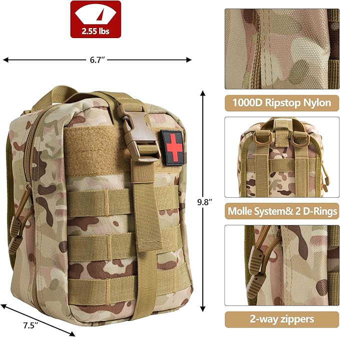 - COMPREHENSIVE KIT: Complete trauma first aid kit featuring essential medical supplies for emergency situations and bleeding control