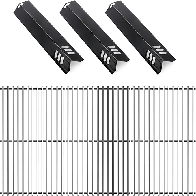 - [Perfect Stainless Grill Grates] These cooking grates and grill heat shields gas grill parts are made of durable stainless steel and porcelain steel with strong oxidation resistance, corrosion resistance and heat resistance. The durability makes them unnecessary to be changed again and again, ideal grill parts for uniflame.