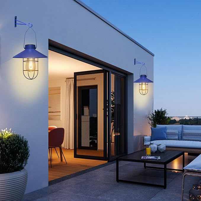 - 【ROMANTIC ENVIRONMENT】 -- Brushed blue solar hanging lantern emit a warm white light and create a romantic and comfortable space. NOTE: ONLY FOR DECORATION, NOT FOR ILLUMINATION PURPOSES