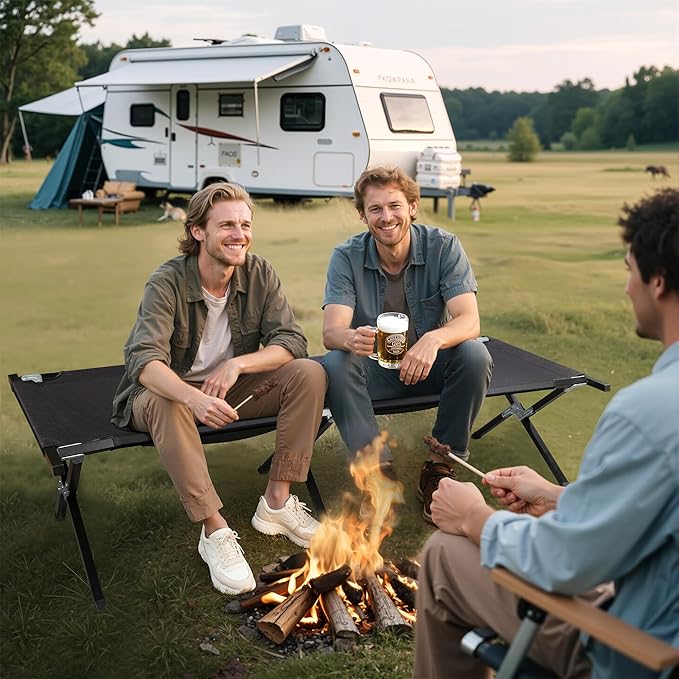 - 【Compact & Portable】Measuring 74.61"L × 29.33"W × 17.52"H and weighing only 17.73lbs, this outdoor camping cot for adults easily collapses into its included storage bag for convenient transportation.