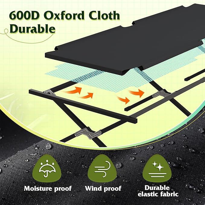 - 【Soft & Durable】Crafted with double-layer 600D Oxford fabric, this outdoor camping bed is durable, quick-drying and easy to clean - no need to worry about spills. The breathable material makes it perfect for camping and vacations, becoming your essential outdoor companion.