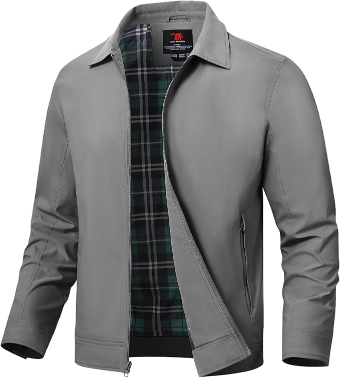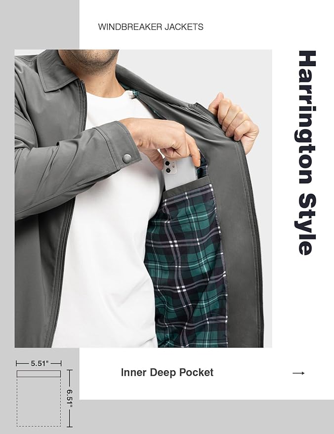 • 【Classic Plaid Lining】This men's full zip lightweight jacket features the classic design of the HARRINGTON on the jacket inside, The integration of quality and fashion.