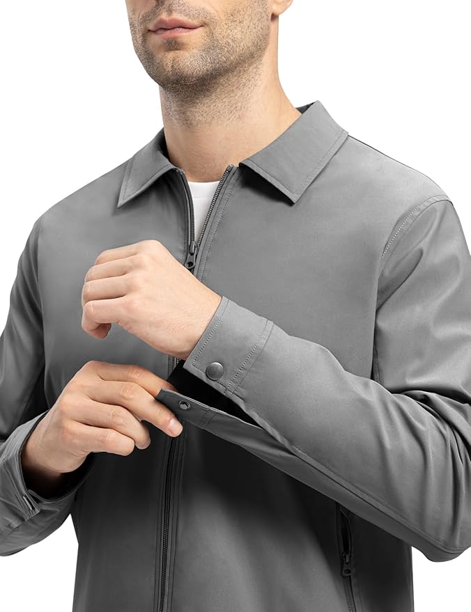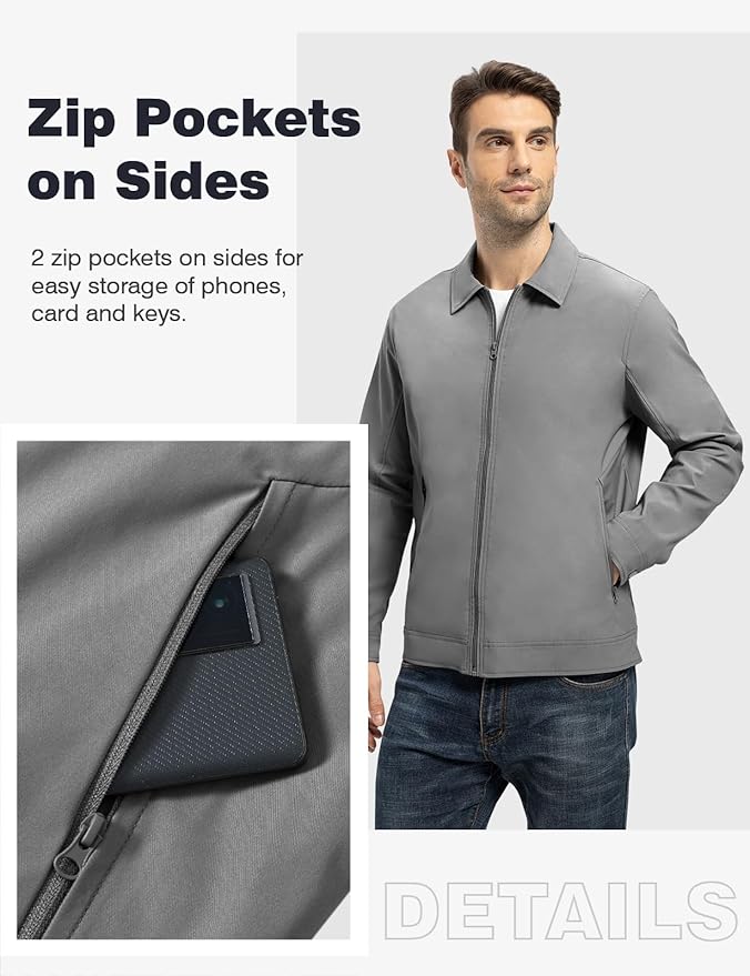 • 【Occation】This men's full zip lightweight jacket is suitable for wearing on cool spring and autumn nights or in the morning, Ideal outfit for Sports,Mechanic Work, Traveling, Golf, and other outdoor activities.