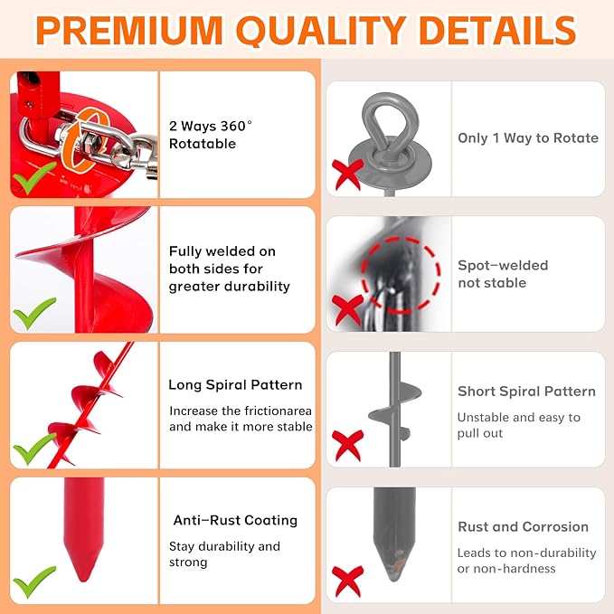 - MULTI-SCENARIO USE: The sharp spiral drill bit and curved auger blade make the dog stake suitable for sand, clay, and even rock. This versatile product is suitable for camping, yard, dog house, and beach environments