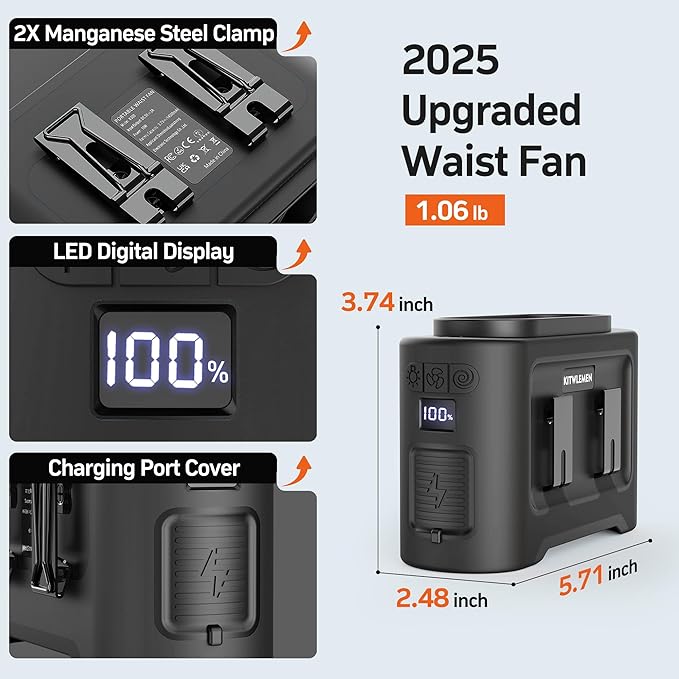 - Long-lasting Battery: The KITWLEMEN waist fan features a 14500mAh battery, providing up to 35 hours of continuous cooling on low speed, perfect for camping, hiking, and outdoor adventures to keep you cool