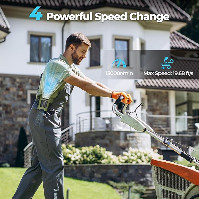 - 4 Powerful Speeds: AddAcc personal clip on belt fan boasts newest motors that spins up to 13000 RPM and provides airflow speeds up to 20 ft/s, will whisk away your body heat in seconds. 4 speeds adjust, meet your needs in various scenarios and keeping you comfortable anytime, anywhere