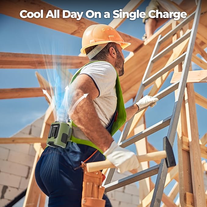 - All Day Use: This portable waist fan packs a powerful 5000mAh battery, delivering 3 to 24 hours cooling on a single charge. Fully recharges in just 3 hours, Perfect for outdoor work, job sites, camping, fishing, hiking, or travel in the heat