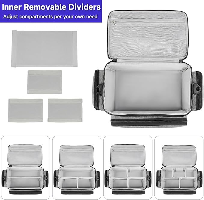 - Adjustable Main Compartment: The medicine storage bag has 4 removable dividers that divide the main space into 5 parts, helping to easily organize different medical supplies as needed.Large u-shaped opening with two-way zipper is convenient to put in or take out items