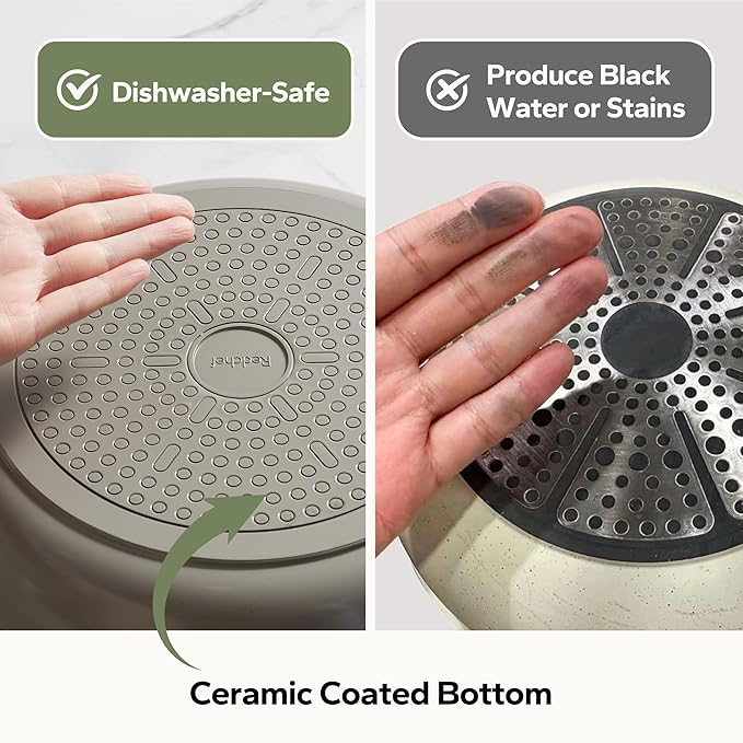 - Non-Toxic Ceramic Coating: Redchef's PTFE/PFOA/PFAS-free ceramic coating ensures healthy, worry-free cooking. Eggs and steaks glide off effortlessly, while the healthy design prioritizes daily meal safety—combining the scratch-resistant durability of ceramic frying pans with the trusted smoothness of premium nonstick frying pans