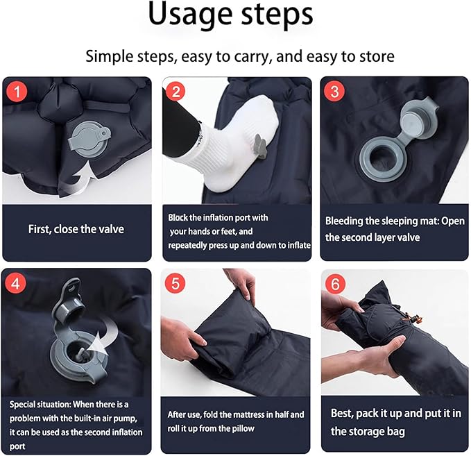 - Quick & Easy Inflation.Inflates in minutes with a simple foot pump or hand press – no extra tools required. Deflates just as fast for hassle-free packing.