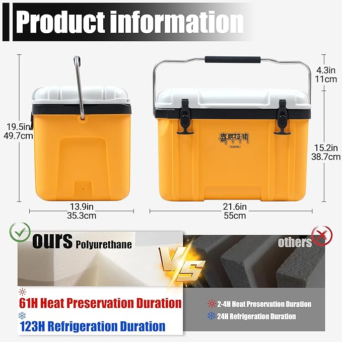 - 30% Lighter Than Rotomolded Coolers: Constructed with high-quality PP material, this product masterfully combines a stylish appearance with exceptional durability.The outer shell is made of PE material, which is wear-resistant and anti-collision. The color combination of black, white, and yellow not only adds a touch of vibrancy but also offers unbeatable aesthetics for outdoor activities, and ensuring it stands out while withstanding the rigors of outdoor use.