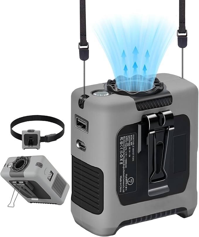 - 【Multiple Functions】This portable personal waist fan,also known as a belt fan or clip fan,is simple to use and can be used as a small desktop fan,neck fan,waist fan,power bank,LED light and SOS light.