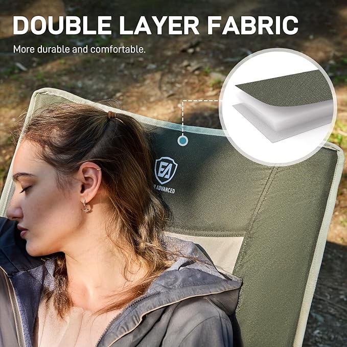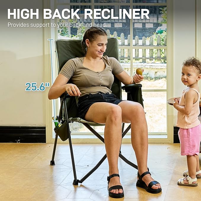 EVER ADVANCED Reclining Camping Chairs for Adult Lightweight, Folding Recliner Chair with Adjustable Back, 4-Level Lounge Chairs, Portable Lawn Chairs for Patio Balcony, Supports 350lbs Green
