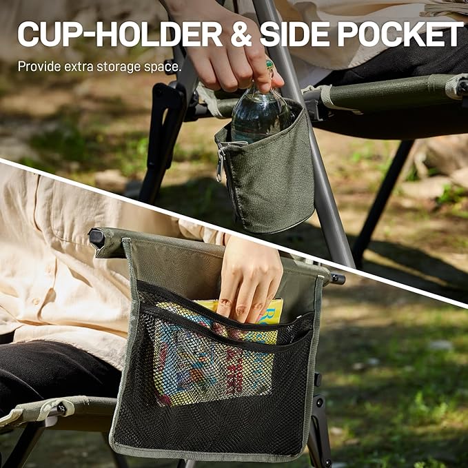 - ใ๐๐จ๐ง๐ฏ๐๐ง๐ข๐๐ง๐ญ ๐๐ญ๐จ๐ซ๐๐ ๐ & ๐๐๐ฌ๐ฒ-๐๐๐ญ๐ญ๐ข๐ง๐ ๐ฎ๐ฉ ๐๐ซ๐ฆ๐ซ๐๐ฌ๐ญ๐ฌใThis folding camping chair features a side pockets and a cup holder for extra storage. Firm armrests provide stable support for effortless sitting/standing โ ideal for elderly needing extra stability.