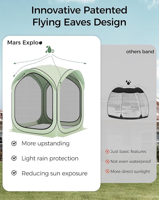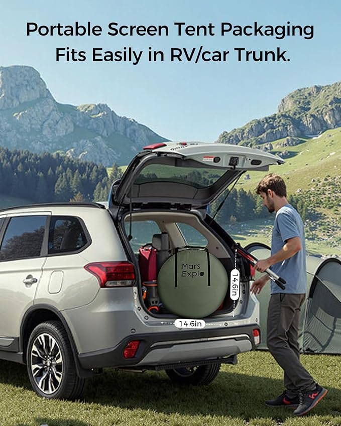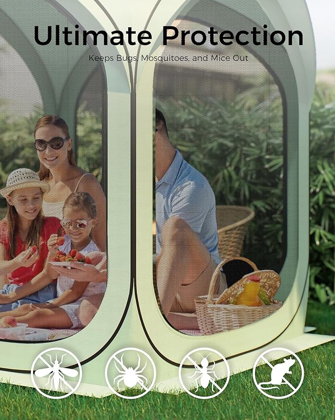 - Versatile & Comfortable Outdoor Experience: Perfect for various outdoor settings, this screen tent is great for relaxing in the backyard, hosting outdoor parties, or camping. It includes a hook for hanging lamps, allowing for extended use into the evening. The breathable design ensures comfort, while the mesh doors provide easy access and extra ventilation.