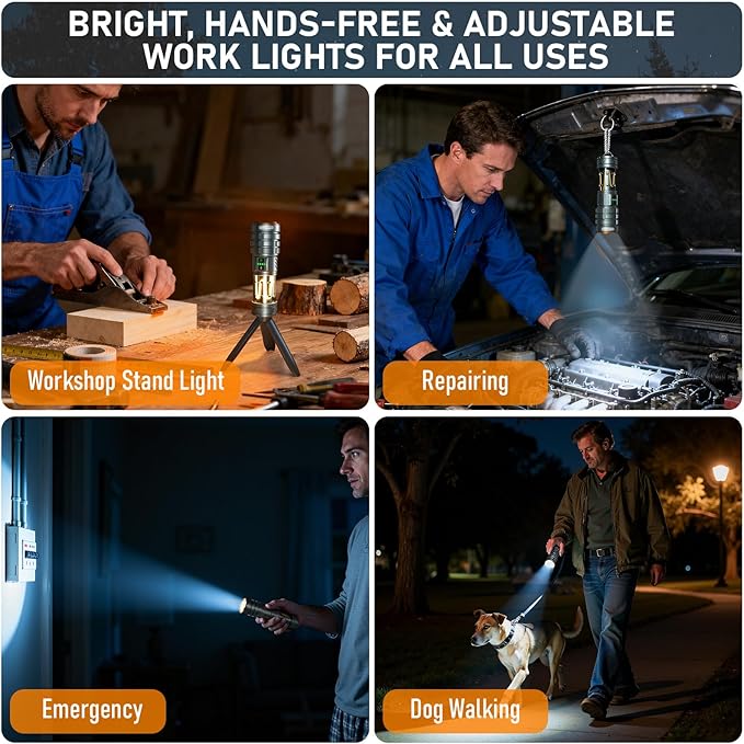 - One-Year Quality Assurance: Comes with a one-year replacement service and 24/7 customer support for your peace of mind. Complete Package Includes a aluminum alloy material multi-function high lumen tactical flashlight, 5000mAh rechargeable battery, Type-C charging cable, tripod stand, carrying lanyard, and a user manual.
