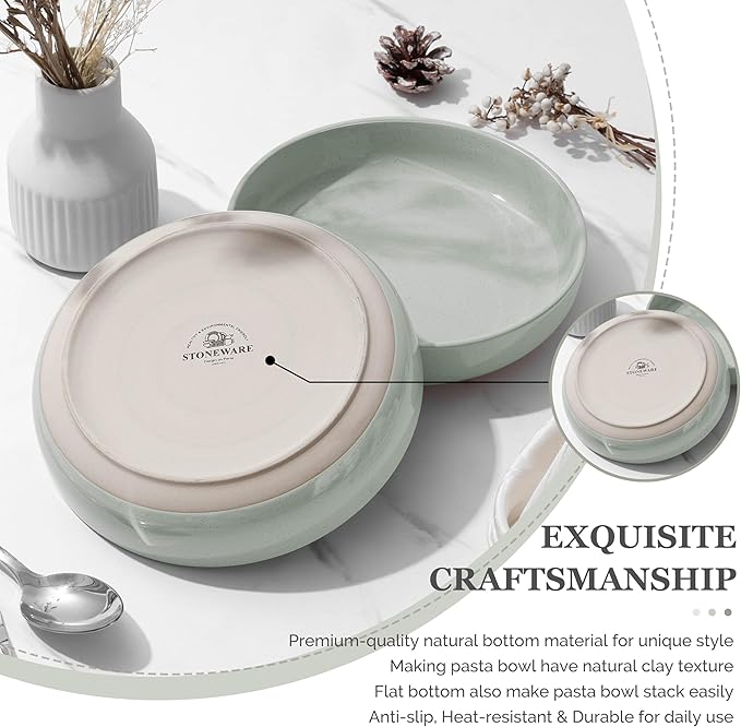 - SPACE-SAVING AND EASY TO CARE: Smooth glazed surface is easy to clean and leaves no food residue, dishwasher safe to make cleaning bowls a breeze, Meanwhile, these pasta bowls dish set are stackable, easy to store and will not slip or tilt easily, saving your kitchen space and keeping your cabinets tidy and organized