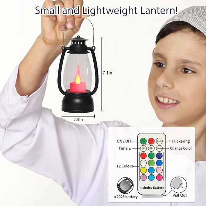 - The decorative lantern is powered by AAA batteries (not included), while the remote control is powered by one CR2025 battery (included). There's no need to worry about fire accidents as it is safe to use around children and pets. When you use brand new AAA batteries, they can last for over 200 hours, ensuring that the mini lanterns will keep shining throughout weddings, parties, or festivals