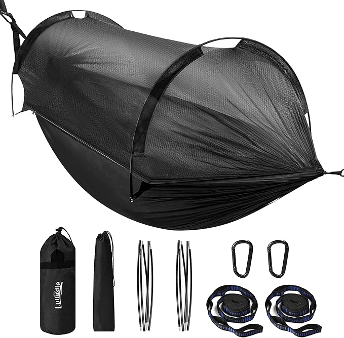 Lulladle Ultralight 2 Person Camping Hammock Mesh House Type Hammock Portable Travel Hanging Hammock 600lbs Durable Parachute Nylon Easy Setup and Pack for Backpacking Hiking Backyard
