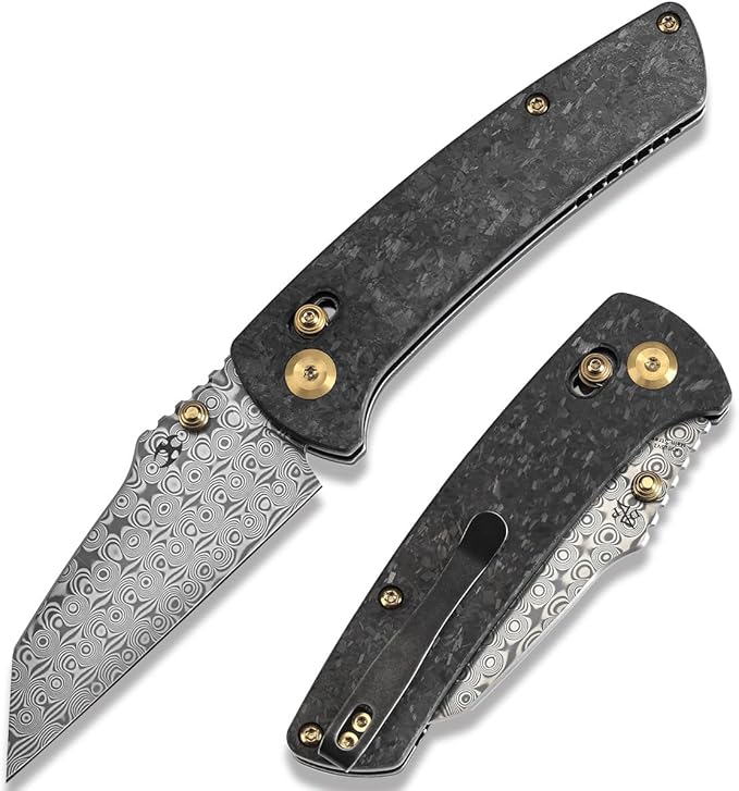 KANSEPT Elite Main Street Pocket Knife, 3.36''Damascus Sharp Tanto Blade, Shred Carbon Fiber Handle with Axis Lock and Thumb Stud,Perfect Clip for EDC, Men Gift Camping Survival Folding knives K1015V1