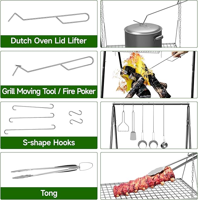 - Perfect BBQ Experience: Whether it is a family gathering, a picnic with friends, or enjoying a quiet time alone, this campfire tripod is your best companion