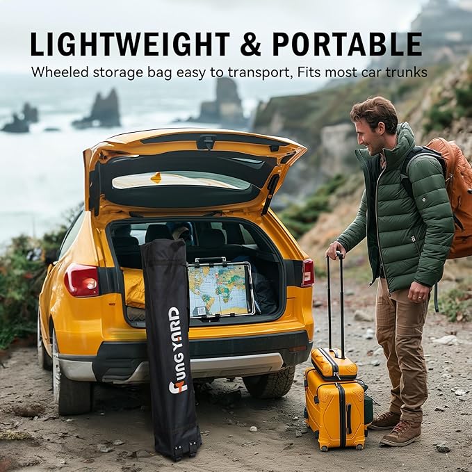 - 【TRANSPORT & STORE WITH WHEELED CARRY BAG】The Outdoor Canopy Shelter features a compact folded size effortlessly fits into a compact carry bag included, ensuring easy portability and space-saving storage for any outdoor adventure or event.