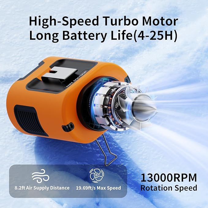 - 【Shirt Fan Clip with Silicone Cover, Anti-Drop】A practical design with two Manganese steel clamps facing opposite directions allows for more placement options. Clip a long clamp onto a belt and blow air under the shirt, as well as a short clip to prevent your shirt from blocking the intake. The body fan comes with a high-quality protective silicone leather case, which protects from shock when dropped and ensures the body fan is not damaged. It is designed for various outdoor usage scenarios, catering to occupations like workers and farmers