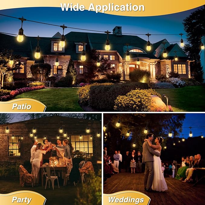- 【Exclusive Teardrop Style Ambiance Gift-Remote Control】outdoor string lights solar powered 2700K warm soft white light create bistro cafe bars relaxing and Warm and cozy ambiance at your deck yard backyard garden when eating dinner /talking with friends,aslo when singing and dacing at the social activity using the Remote Control 3models(flash/static/breath)and 5 brightness levels (20/40/60/80/100%) to enjoy party better.