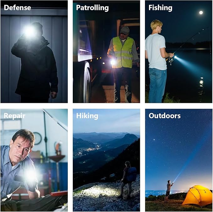 - WIDE APPLICATIONS OF THE FLASHLIGHT - This practical flashlight makes the perfect birthday gift for men, women, fathers, best friends, brothers, hunters, and more; it is the ideal accessory for adventures, outdoor activities, camping, fishing, repairs, patrolling, rescue operations, safety, biking, work lighting, walking, and other outdoor pursuits. For family members interested in a bright flashlight, this is the perfect Christmas gift.