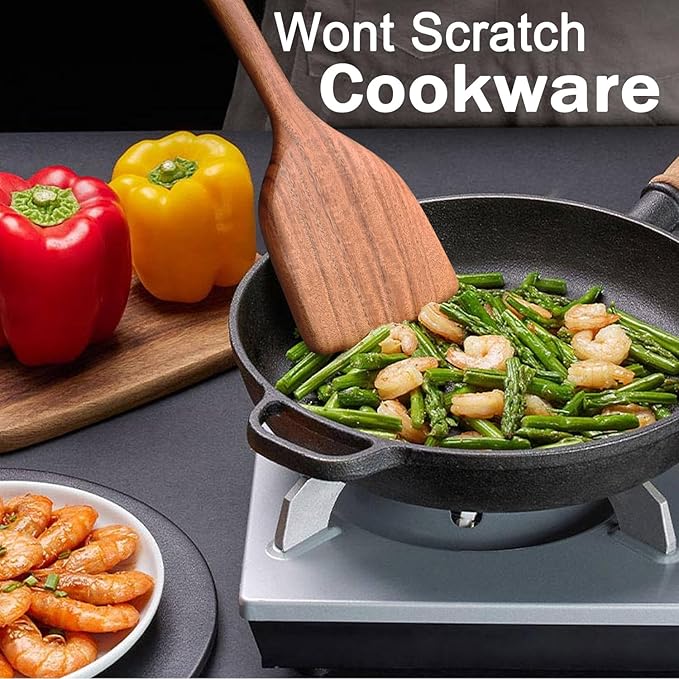 - 【Scratch-Resistant Kitchen Utensils】Our durable tea frying pan wooden spots, wooden cooking utensil set are polished and polished to achieve a smooth surface, it can prevent kitchen tools from being scratched or expensive non-stick cookware from being damaged. and with hanging holes for wall storage, high-quality and earth-friendly type teak wooden spoons. Every kitchen needs a wooden spoon to cook and decorate.