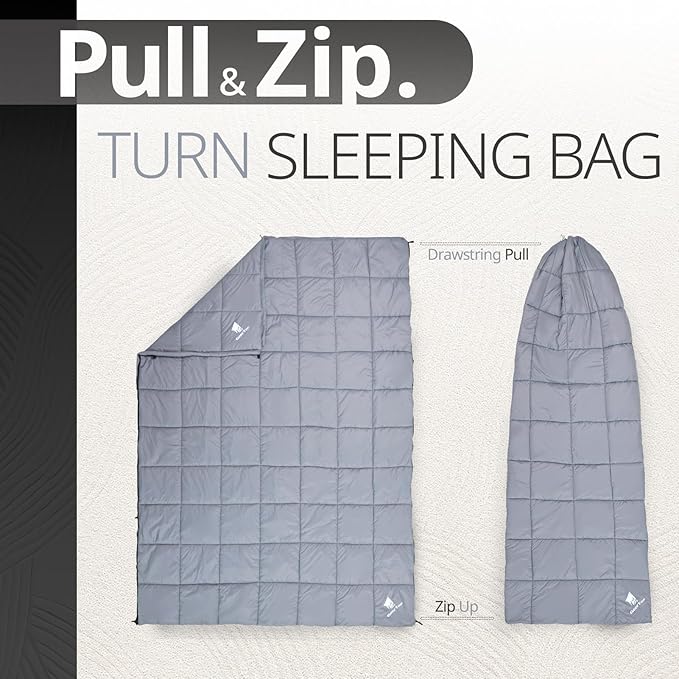 - Stay Warm Anywhere & Anytime: Designed for cold weather camping adventures, this camp sleeping bag blanket combines high-loft insulation and a soft, cozy feel to keep you warm in freezing temperatures. Perfect for van life, glamping, backcountry camping, or cheering at outdoor stadium events