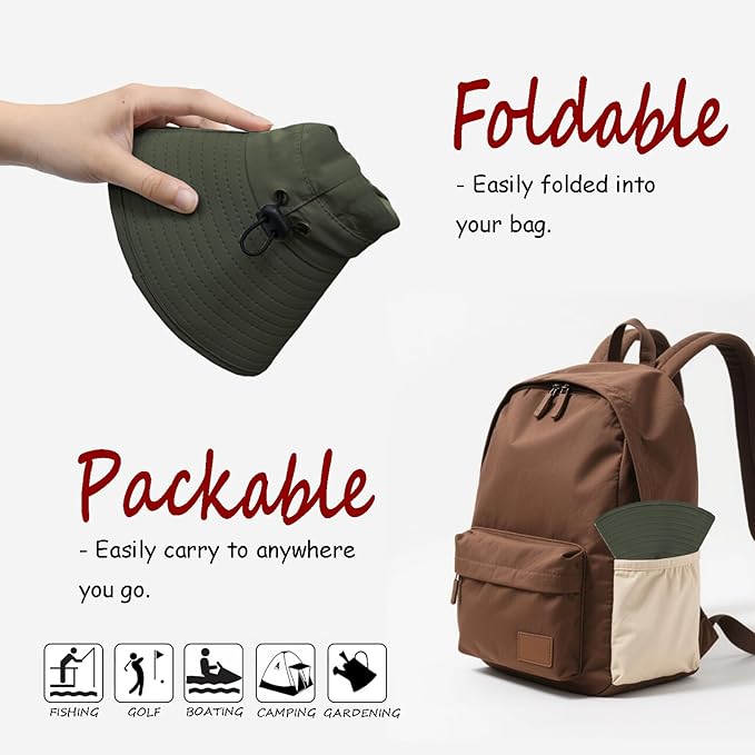 • Foldable Sun Hats: This mens fishing hat can be easily folded into your bag, making it portable and convenient for travel and various outdoor activities, such as hiking, camping, traveling, boating, safari, and fishing trips during the hot summer days.