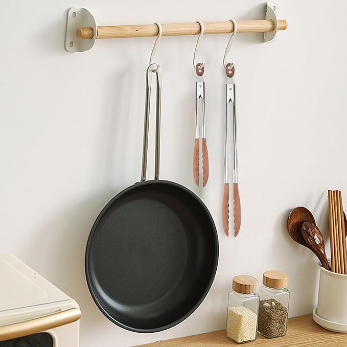 - Space-Saving Design: Wooden tongs for nonstick cookware, with a convenient locking mechanism, these tongs stay closed when not in use, allowing for easy storage in drawers or hanging on hooks, saving valuable kitchen space.