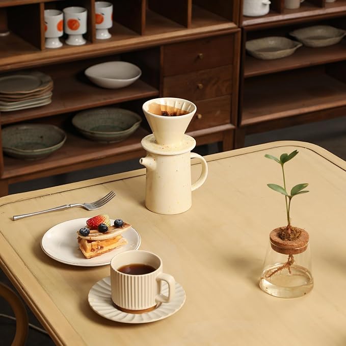 - Easy to Use and Clean:Our ceramic pour over coffee dripper set lets you have a traditional, hands-on brewing experience,you can have a cup or two of coffee whenever and wherever you want.Ceramic material is easy to clean, just rinse with water after use.Microwave, oven, dishwasher safe.