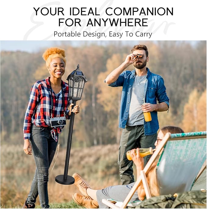 Emliviar Solar Pathway Light with Water Grain Glass Shade, 46 Inch Classic Post Lamp with Round Base in Black Finish, Portable Floor Lamp for Outdoor Travel, LED Bulb Included, YXE302PL-ML SL BK