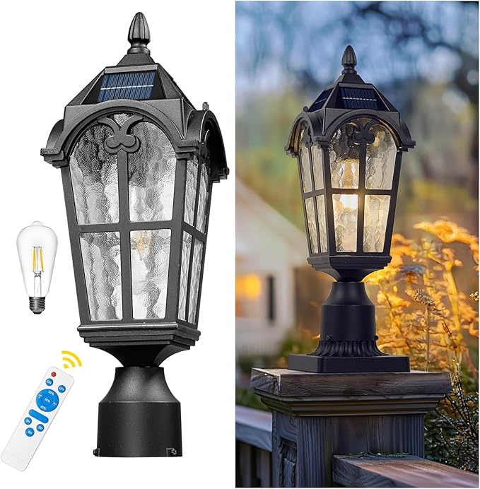 - Weather Resistant: With a waterproof rating of IP43, this post lamp is made of durable aluminum and water grain glass in a black finish, suitable for all-weather use. Comes with a 2700K LED light bulb(Max 4W). NOTE: Light source is INCLUDED and Not compatible with other LED bulbs. ONLY suitable for the ST64 LED bulbs - Asin: B0F2HWRPP9.