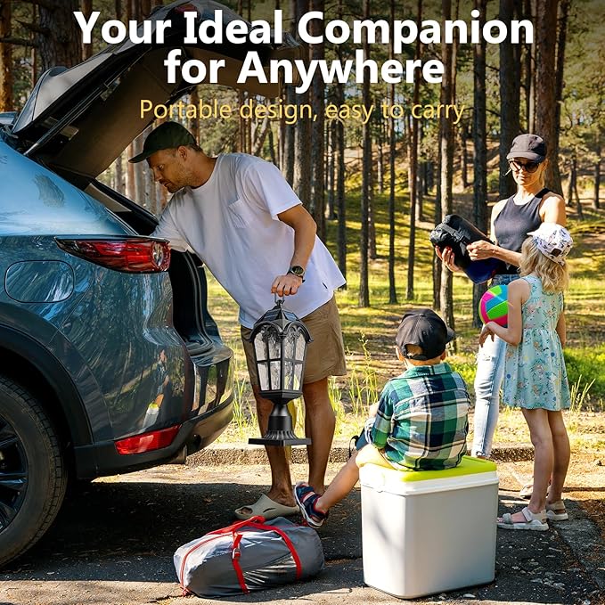 - Solar-Powered Post Lighting: This vintage table lamp the latest solar technology with four efficient solar panels and a high-capacity 3600mAh/3.7V Li-ion rechargeable battery. It takes just 8-10 hours to fully charge and provides up to 13 hours of illumination at night.