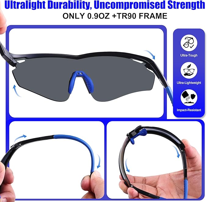 • 【Uncompromised Stability】The secure TR90 wrap-around frame provides a snug, aerodynamic fit that stays put through wind, sweat, and rapid movement. Enjoy panoramic, protected vision without fear of slippage and break during intense activities like running, cycling, or hiking.