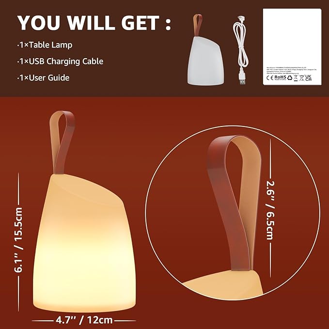 - IP44 Water-Resistant Portable Lantern for Outdoor Use: IP44 Water-Resistant lamp-grade protection ensures durability in gardens/balconies; USB-rechargeable with 2.5-hour charge for 8-hour warm light or 12-hour RGB runtime.