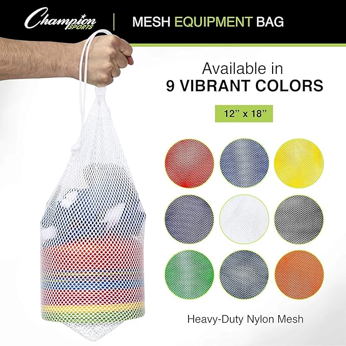 - PREMIUM MESH BAG: Store and organize all your fitness equipment with these nylon mesh bags by Champion Sports! Our sports equipment bags are made with heavy-duty, durable nylon, and are available in multiple vibrant colors.