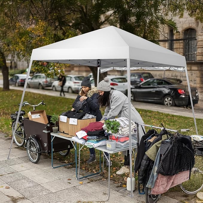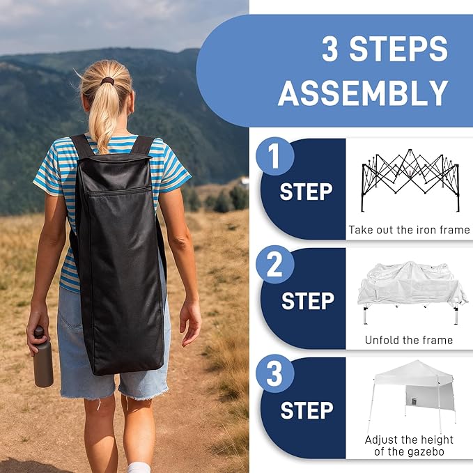 - 【EASY TO ASSEMBLE】The pop up canopy tent is very easy to set up by one person. Fix the canopy with the frame, then open the foldable frame and adjust the height. Powder coated steel frame is easy to open and fold down