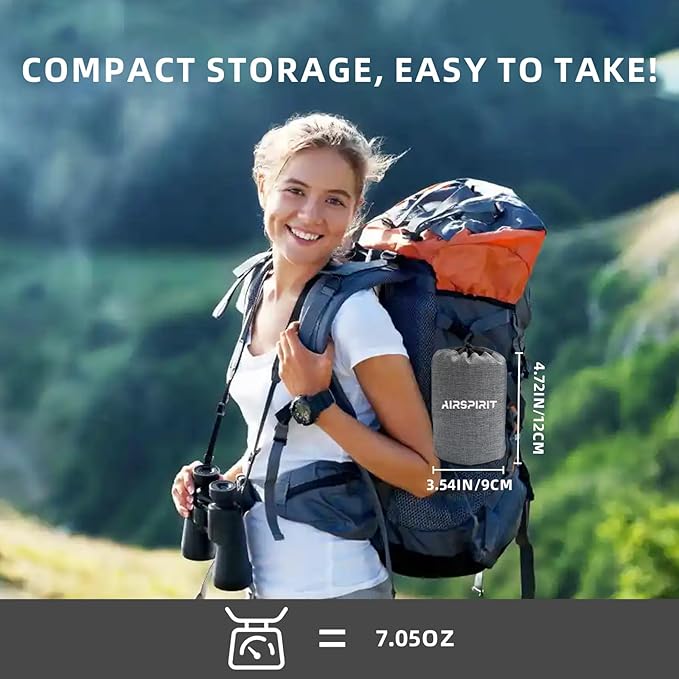 AIRSPIRIT Inflatable Camping Pillow Ultralight Adjustable Firmness, TPU Travel Pillow for Neck & Lumbar Support, Hiking, Backpacking, Airplane, Car Travel & Beach with Removable Washable Cover (Grey)