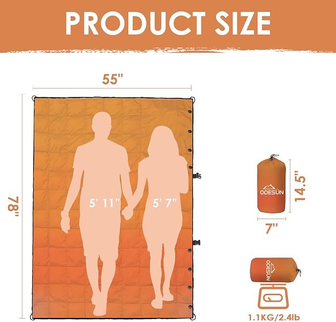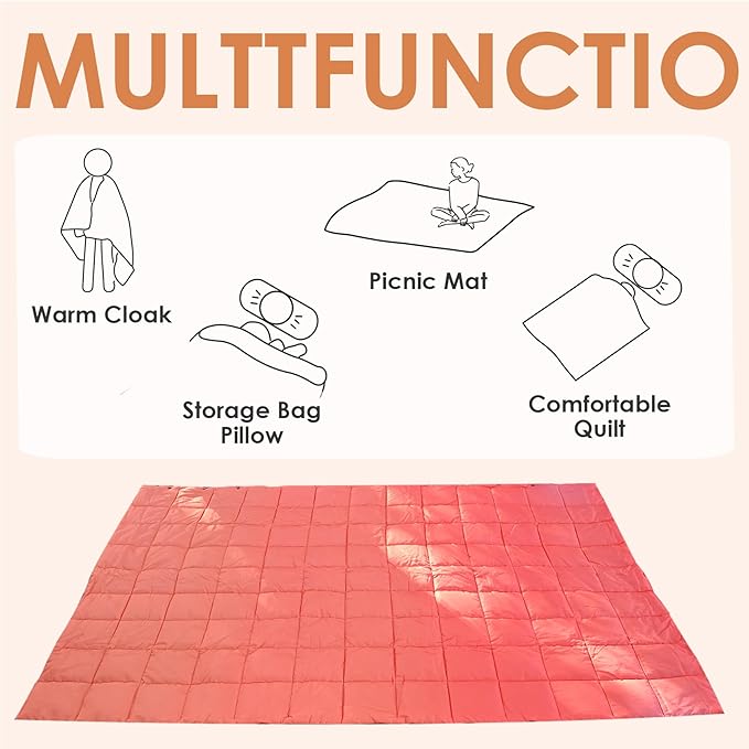 - Puffy Blanket 30D Waterproof and Tear-Resistant: Our fabrics are made of 30D polyester fiber fabric, which is superior to the market's 20D fabric in terms of waterproofing and tear resistance, offering higher durability. This waterproof outdoor down camping blanket provides sufficient protection for outdoor activities, with enough tear resistance, warmth, and comfort while maintaining a light weight for easy carrying.