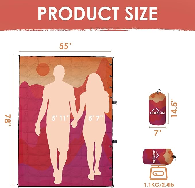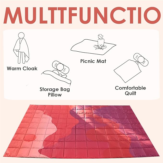 - Versatile Waterproof Camping Blanket Packable: Lightweight yet sturdy, this puffy camping blanket is perfect for backpacking, hiking, camping, stadium events, beach visits or festivals. When outdoors, this waterproof camping blankets for cold weather can be used not only as a mattress, but also as a outdoor or indoor blanket warm and camping quilt. You can also wear it as a cloak.