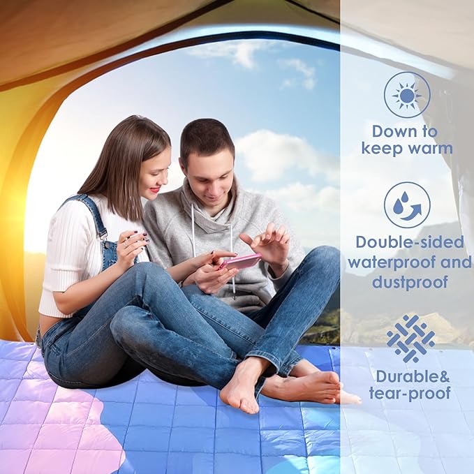 - Puffy Blanket 30D Waterproof and Tear-Resistant: Our fabrics are made of 30D polyester fiber fabric, which is superior to the market's 20D fabric in terms of waterproofing and tear resistance, offering higher durability. This puffy waterproof camping blanket provides sufficient protection for outdoor activities, with enough tear resistance, warmth, and comfort while maintaining a light weight for easy carrying.