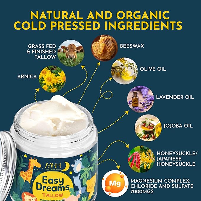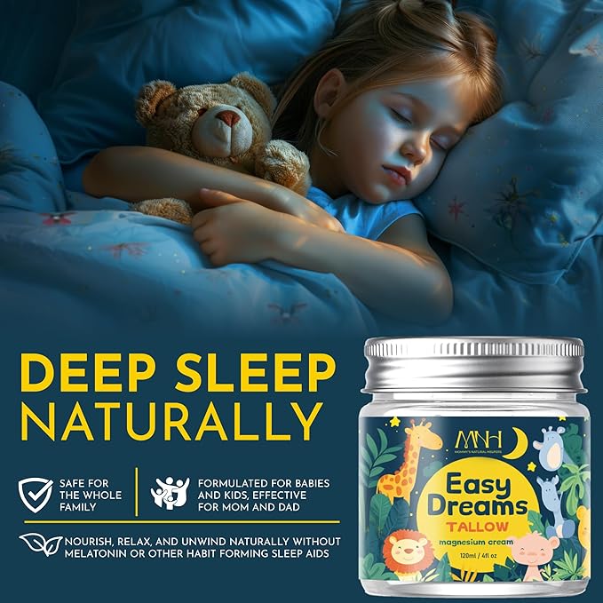 - MULTIPURPOSE BENEFITS - Easy Dreams magnesium cream is more than a sleep aid! It also supplements the daily essential magnesium your child needs to support heart, bone, nerve, gut, and muscle health. With a naturally mum approved lavender scented tallow-based formula, it doubles as a soothing eczema cream, a deeply hydrating moisturizer, and the perfect addition to your junior’s bedtime lotion routine.