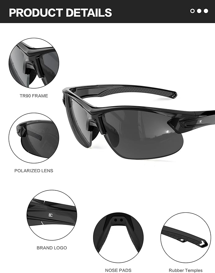 BIRCEN Polarized Sport Sunglasses for Men: UV Protection Fishing Shades for Golf Baseball Driving Motorcycle BC3065