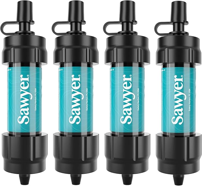 - Filter rated up to 100,000 gallons; Includes four Sawyer MINI filter and four cleaning plungers.