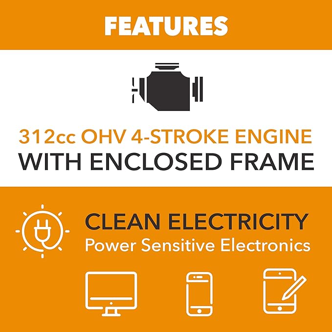- 【Durable Plastic Frame & Digital Hour Meter】Protects the generator from damge while reducing noise during operation, ensuring a quieter and more reliable performance. Digital hour meter accurately tracks operating hours to plan maintenance, estimate fuel usage, and monitor performance, ensuring your generator runs efficiently and reliably.